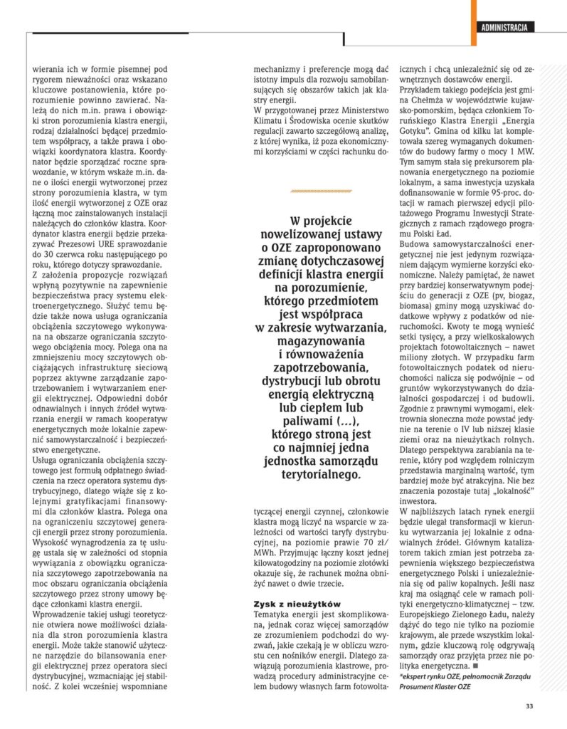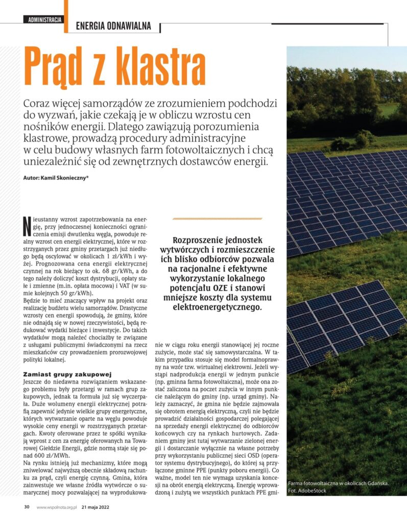 Coraz więcej samorządów zawiązuje bowiem porozumienia klastrowe, prowadzi procedury administracyjne w celu budowy własnych farm fotowoltaicznych i chce uniezależnić się od zewnętrznych dostawców energii.