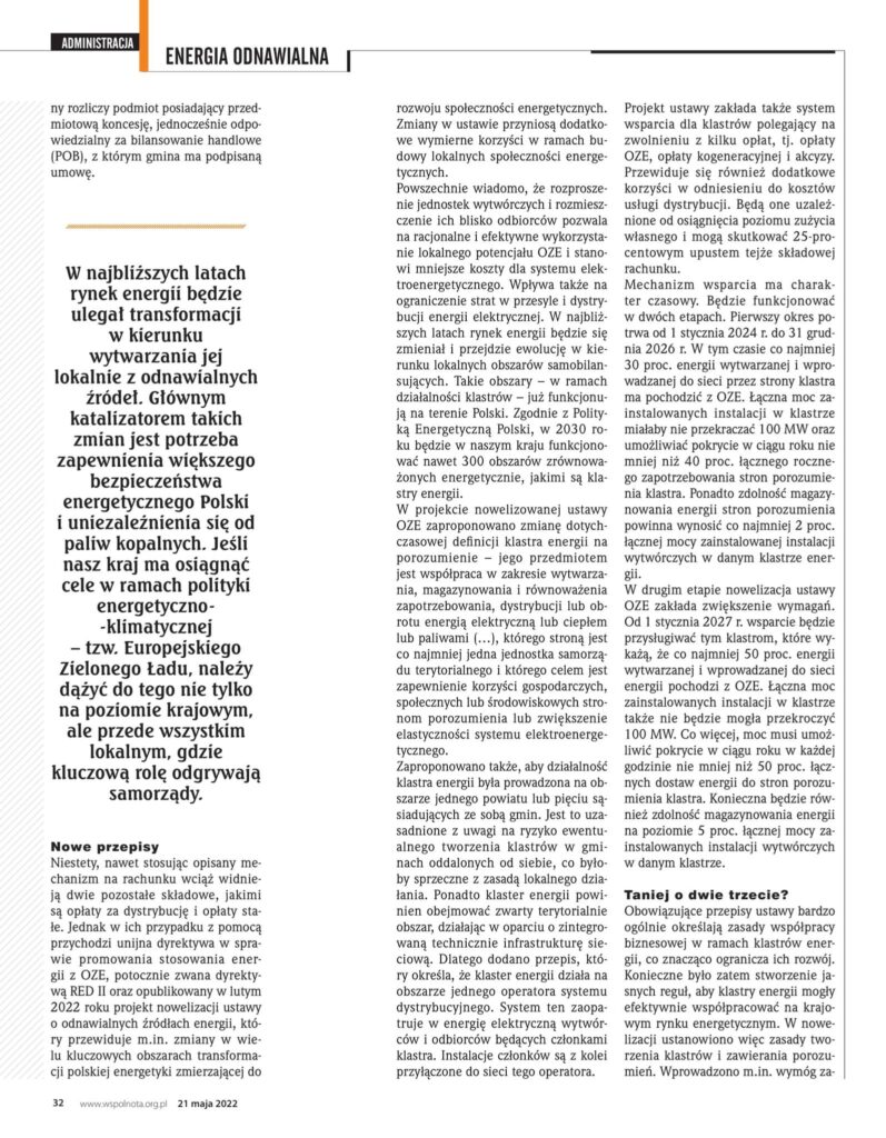 W ostatnim wydaniu Pisma Wspólnota przyglądam się temu, jak samorządy terytorialne radzą sobie z rosnącymi cenami prądu.