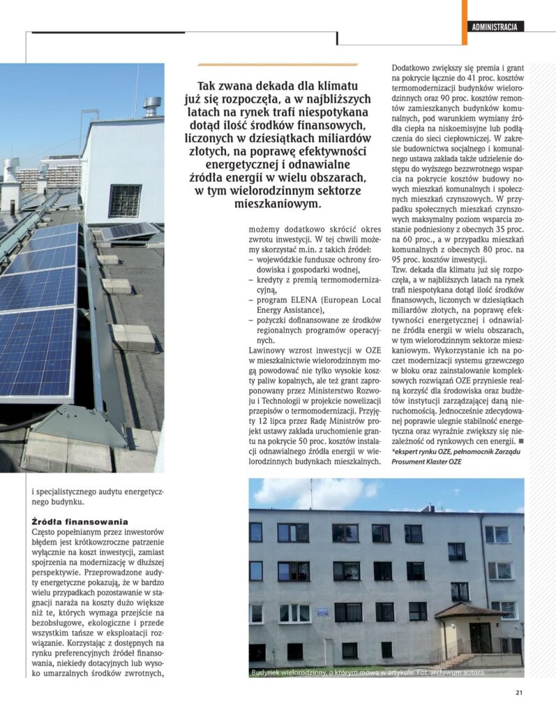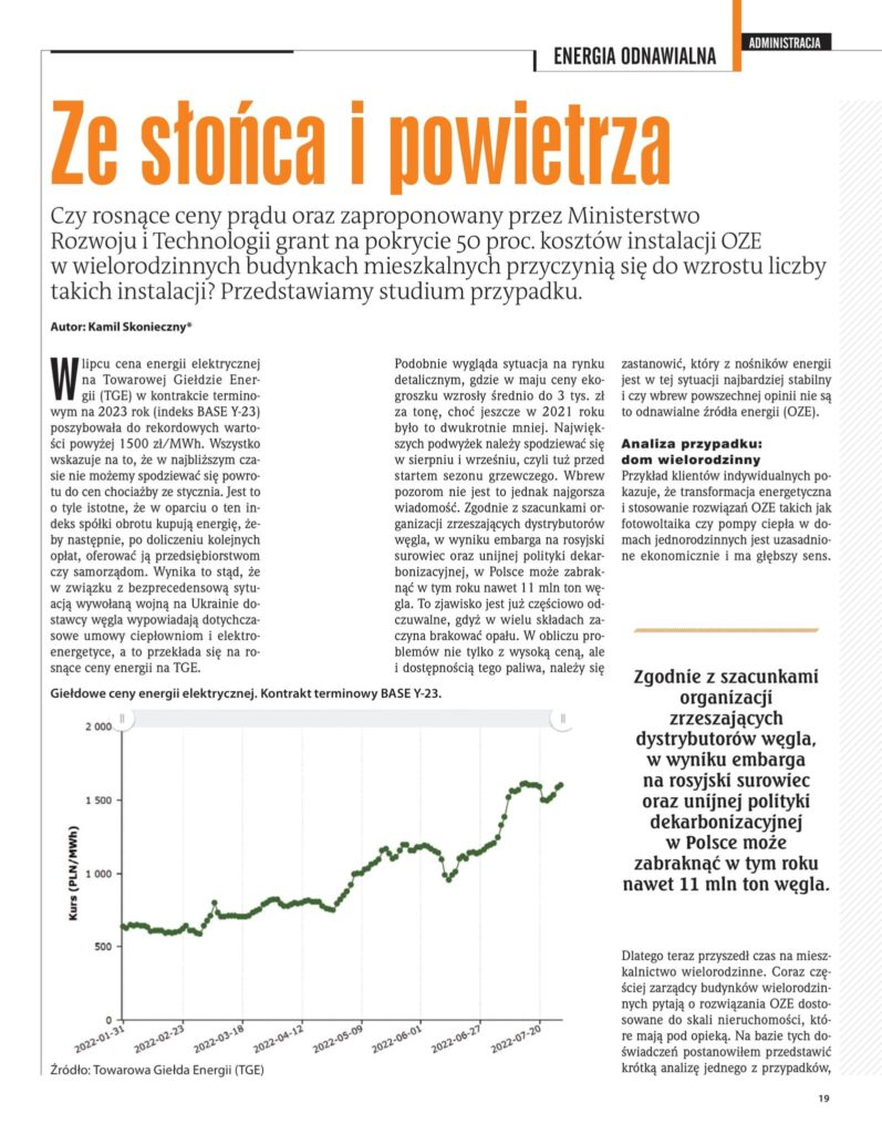 W sierpniowym wydaniu Pisma Wspólnota Mieszkaniowa analizuję czy rosnące ceny prądu oraz zaproponowany przez Ministerstwo Rozwoju i Technologii grant na pokrycie 50% kosztów instalacji OZE w wielorodzinnych budynkach mieszkalnych przyczynią się do wzrostu liczby takich instalacji.
